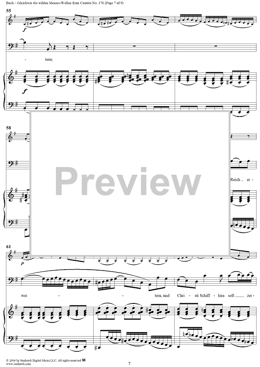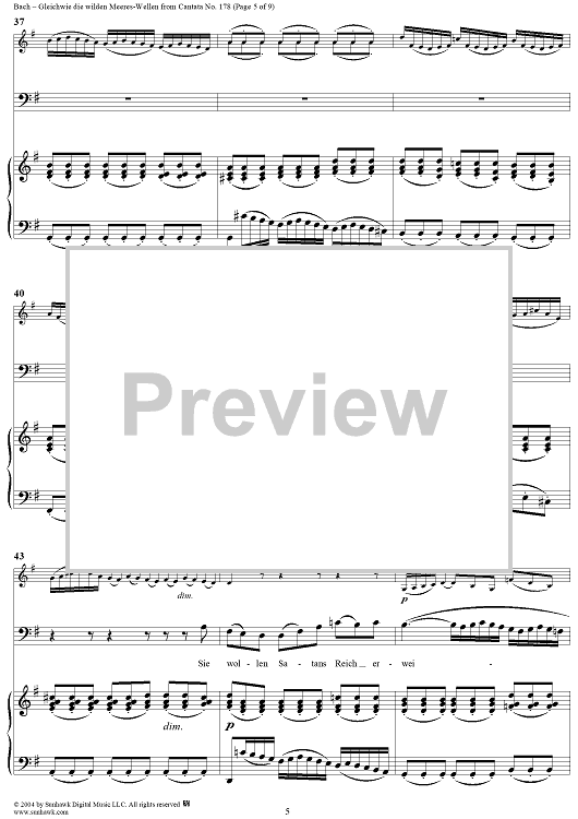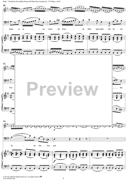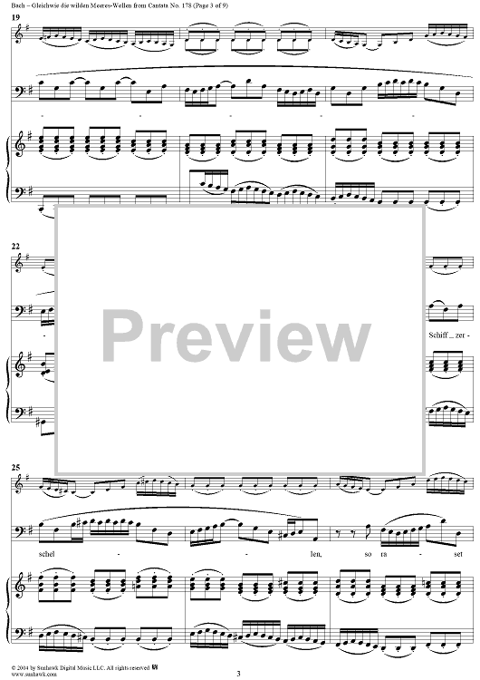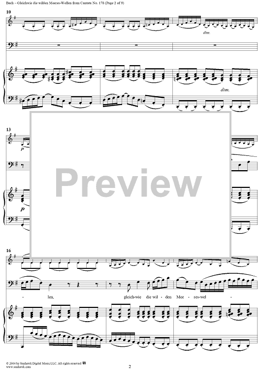 Digital Sheet Music for "Gleichwie die wilden Meeres-Wellen", Aria, No. 3 from Cantata No. 178: "Wo Gott der Herr nicht bei uns hält" - Piano Score by Johann Sebastian Bach scored for Bass, Violin or Viola and Piano or Organ; id:303670