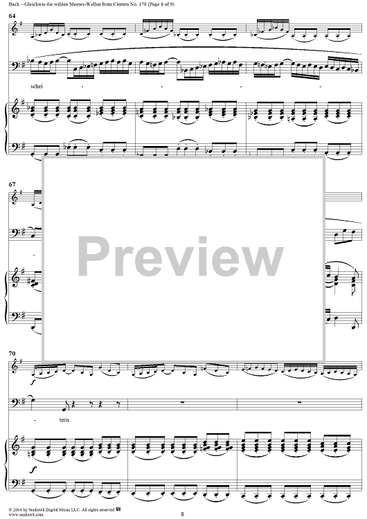 ""Gleichwie die wilden Meeres-Wellen", Aria, No. 3 from Cantata No. 178: "Wo Gott der Herr nicht bei uns hält" - Piano Score" Sheet Music by Johann Sebastian Bach