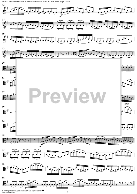""Gleichwie die wilden Meeres-Wellen", Aria, No. 3 from Cantata No. 178: "Wo Gott der Herr nicht bei uns hält" - Viola" Sheet Music by Johann Sebastian Bach
