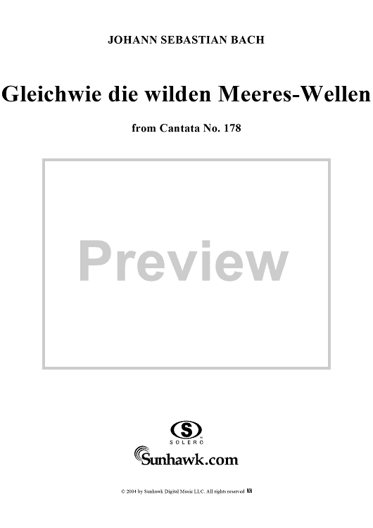 Digital Sheet Music for "Gleichwie die wilden Meeres-Wellen", Aria, No. 3 from Cantata No. 178: "Wo Gott der Herr nicht bei uns hält" - Violin by Johann Sebastian Bach scored for Bass, Violin or Viola and Piano or Organ; id:303671