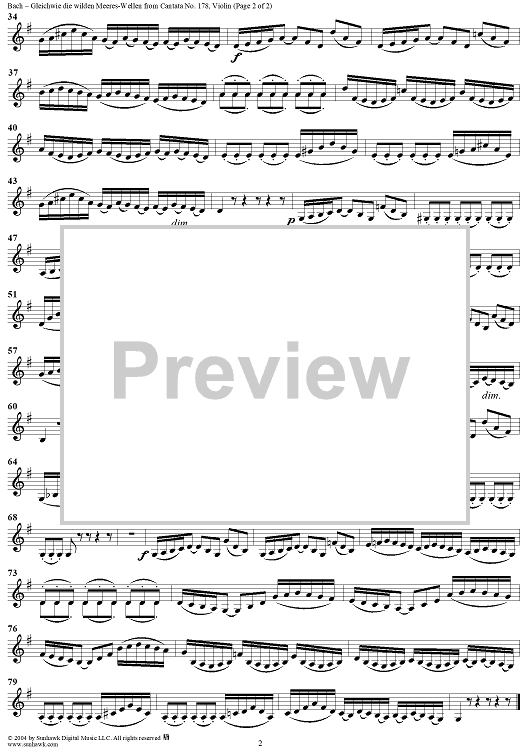 ""Gleichwie die wilden Meeres-Wellen", Aria, No. 3 from Cantata No. 178: "Wo Gott der Herr nicht bei uns hält" - Violin" Sheet Music by Johann Sebastian Bach