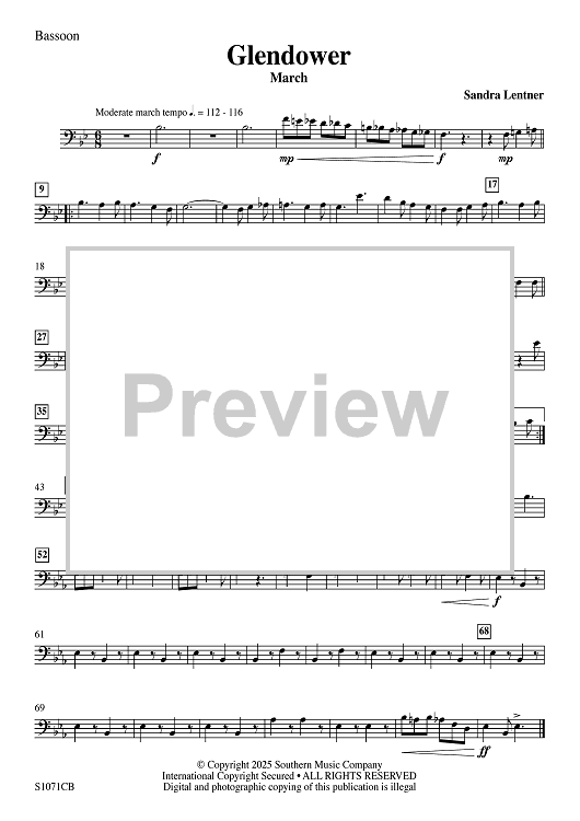 "Glendower March - Bassoon" Sheet Music by Sandra Lentner