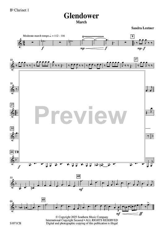 "Glendower March - Bb Clarinet 1" Sheet Music by Sandra Lentner
