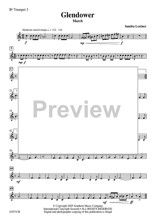 "Glendower March - Bb Trumpet 3" Sheet Music by Sandra Lentner