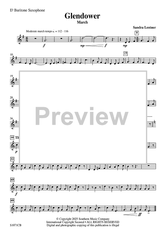 "Glendower March - Eb Baritone Saxophone" Sheet Music by Sandra Lentner