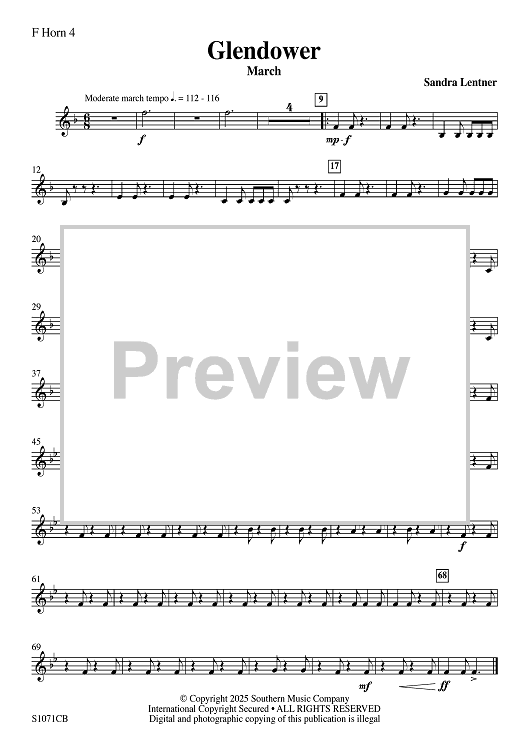"Glendower March - F Horn 4" Sheet Music by Sandra Lentner