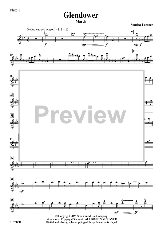 "Glendower March - Flute 1" Sheet Music by Sandra Lentner