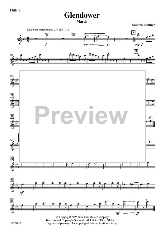"Glendower March - Flute 2" Sheet Music by Sandra Lentner