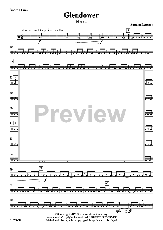 "Glendower March - Snare Drum" Sheet Music by Sandra Lentner