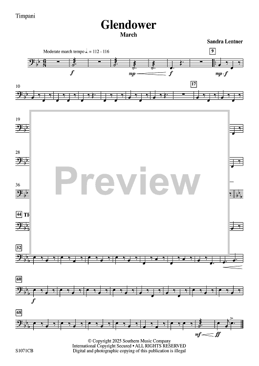 "Glendower March - Timpani" Sheet Music by Sandra Lentner