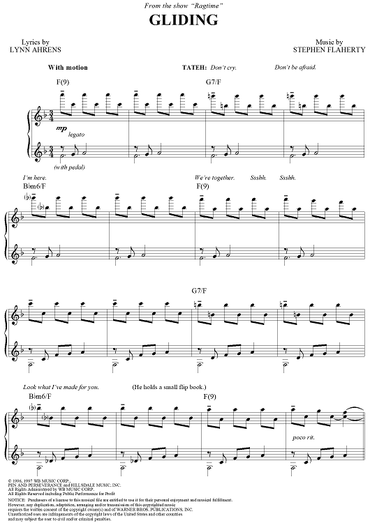 Digital Sheet Music for Gliding by Stephen Flaherty, Lynn Ahrens scored for Piano/Vocal/Chords; id:111026