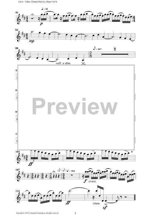 "Glinc - Clarinet in A" Sheet Music by Dimitri Cervo