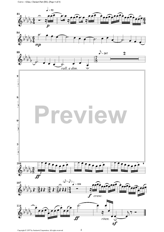 "Glinc - Clarinet in B-flat" Sheet Music by Dimitri Cervo