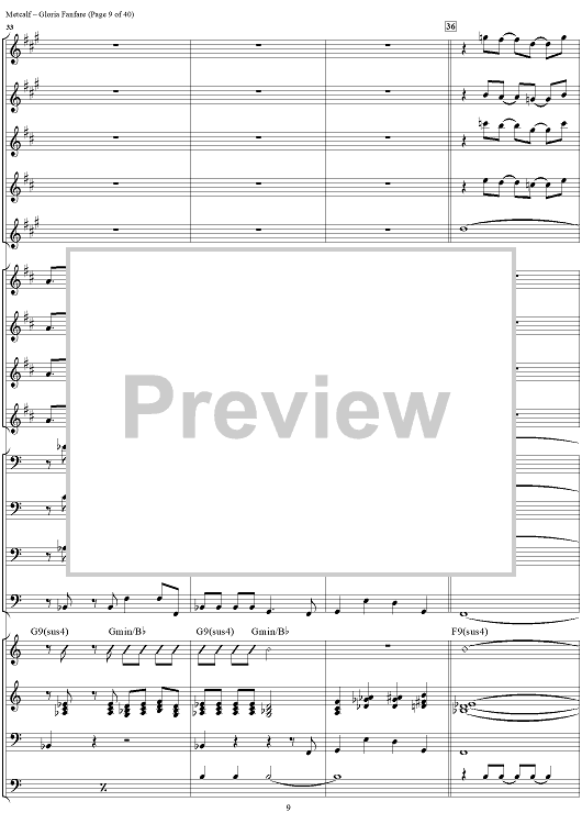 Digital Sheet Music for Gloria Fanfare by Greg Metcalf scored for Jazz Ensemble; id:251752