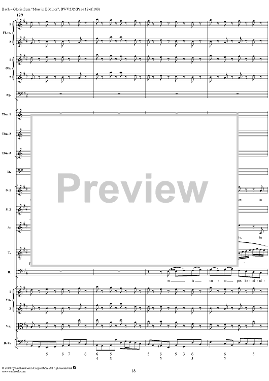 Digital Sheet Music for "Gloria", from "Mass in B Minor" (BWV232) by Johann Sebastian Bach scored for Chorus and Orchestra; id:276154