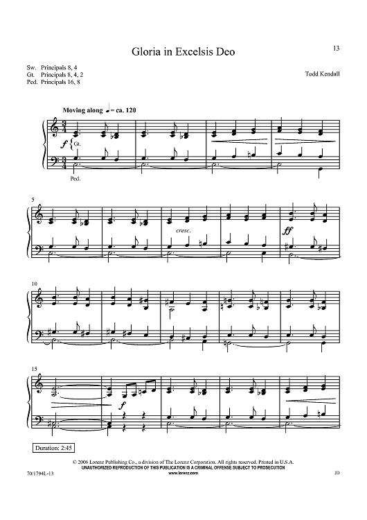 Digital Sheet Music for Gloria in Excelsis Deo by Todd Kendall scored for Organ Solo; id:437759