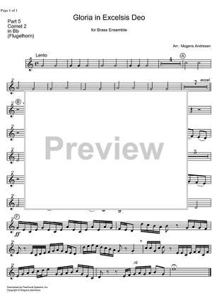 Digital Sheet Music for Gloria in Exelsis Deo - B-flat Cornet by Unknown Writer, Mogens Andresen scored for Brass Ensemble; id:327641