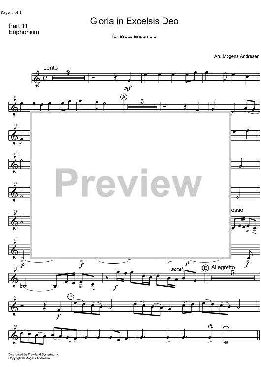 Digital Sheet Music for Gloria in Exelsis Deo - Euphonium by Unknown Writer, Mogens Andresen scored for Brass Ensemble; id:327656