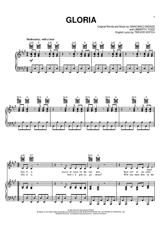 Digital Sheet Music for Gloria by Giancarlo Bigazzi, Laura Brannigan, Umberto Tozzi, Trevor Veitch scored for Piano/Vocal/Chords; id:381338