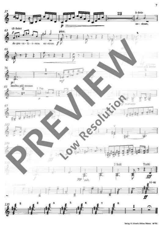 Digital Sheet Music for Gloria - Violin II by Heinrich Sutermeister scored for Mixed Choir (ssaattbb), Soprano Solo And Orchestra; id:488852