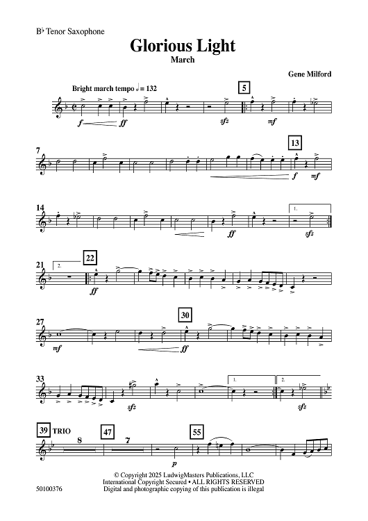 "Glorious Light March - Bb Tenor Saxophone" Sheet Music by Gene Milford