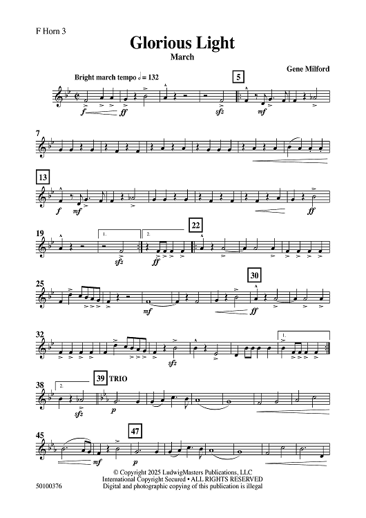 "Glorious Light March - F Horn 3" Sheet Music by Gene Milford