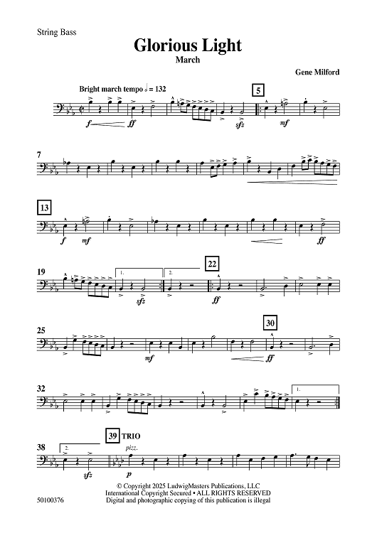 Digital Sheet Music for Glorious Light March - String Bass by Gene Milford scored for Concert Band; id:508980