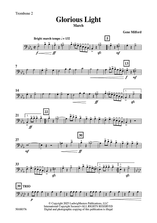 "Glorious Light March - Trombone 2" Sheet Music by Gene Milford