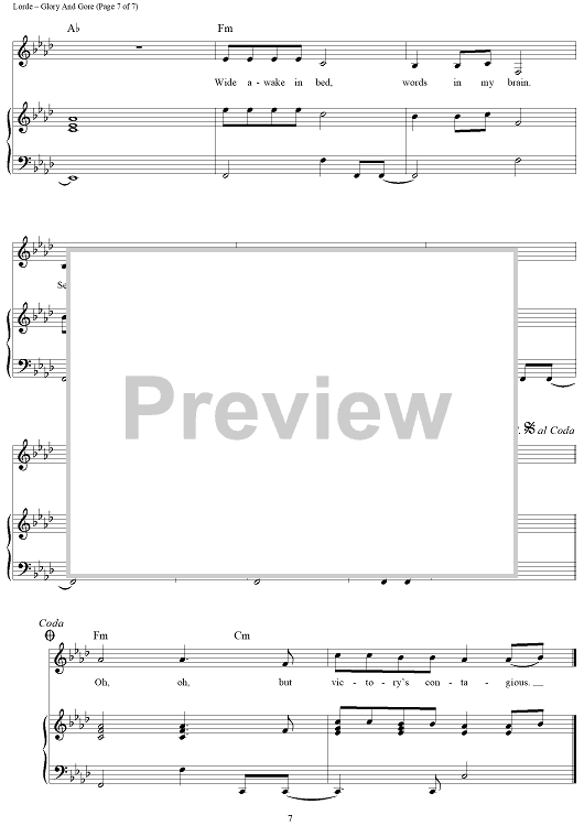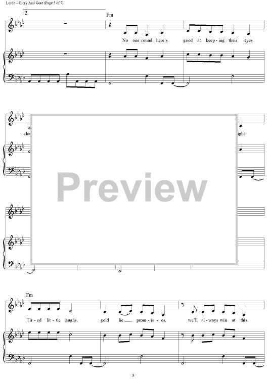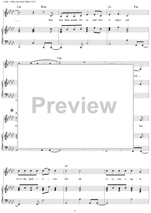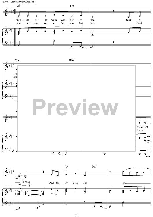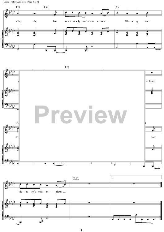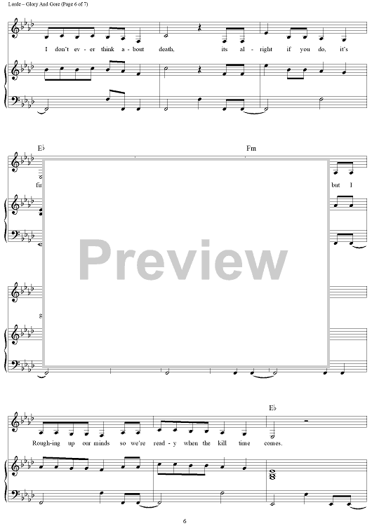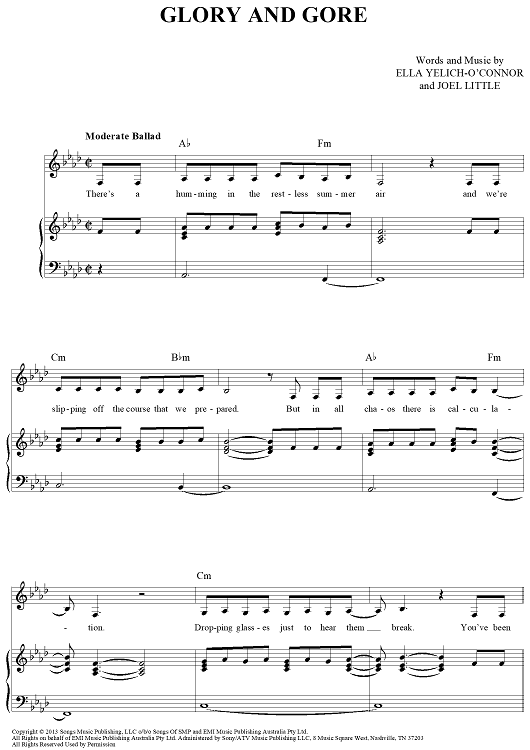 Digital Sheet Music for Glory And Gore by Lorde, Joel Little, Ella Yelich-O'Connor scored for Piano/Vocal/Chords; id:439707