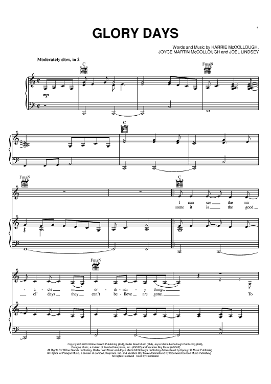 Digital Sheet Music for Glory Days by Joel Lindsey, The Martins, Harrie McCollough, Joyce Martin McCollough scored for Piano/Vocal/Chords; id:380456
