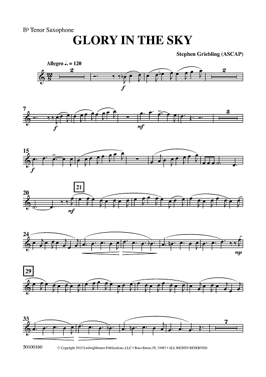 "Glory in the Sky - Bb Tenor Sax" Sheet Music by Stephen Griebling