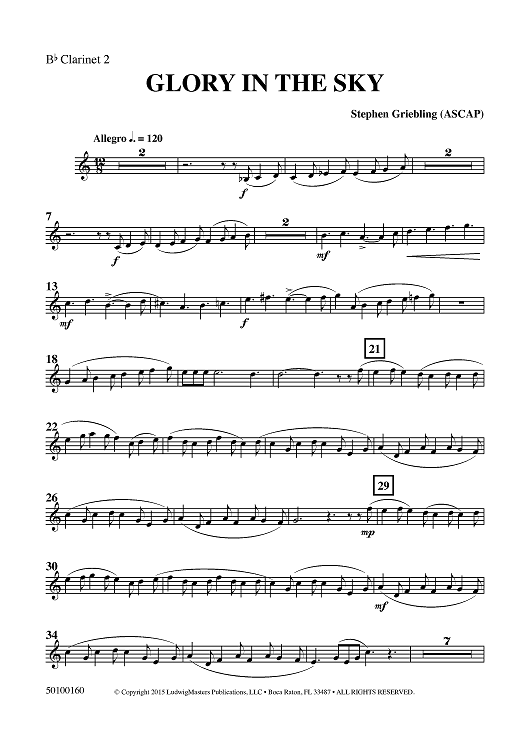"Glory in the Sky - Clarinet 2 in Bb" Sheet Music by Stephen Griebling