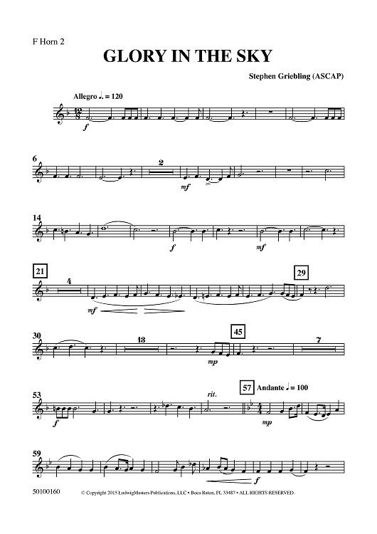 "Glory in the Sky - Horn 2 in F" Sheet Music by Stephen Griebling