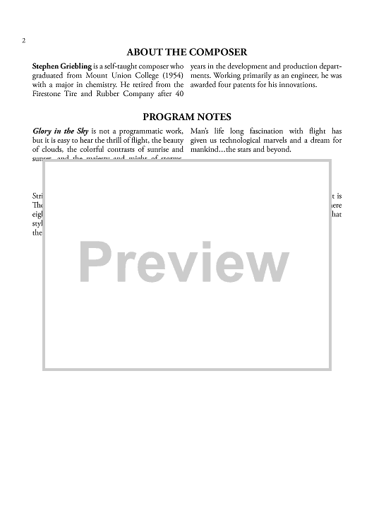 Digital Sheet Music for Glory in the Sky - Score by Stephen Griebling scored for Concert Band; id:459203