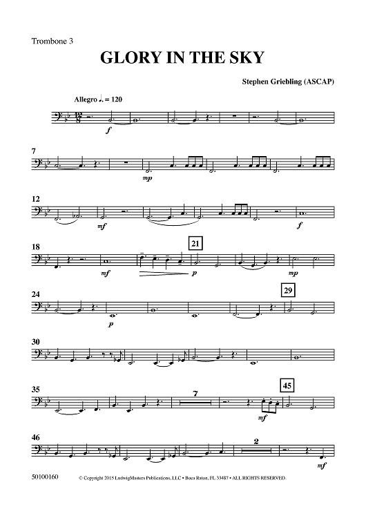 "Glory in the Sky - Trombone 3" Sheet Music by Stephen Griebling