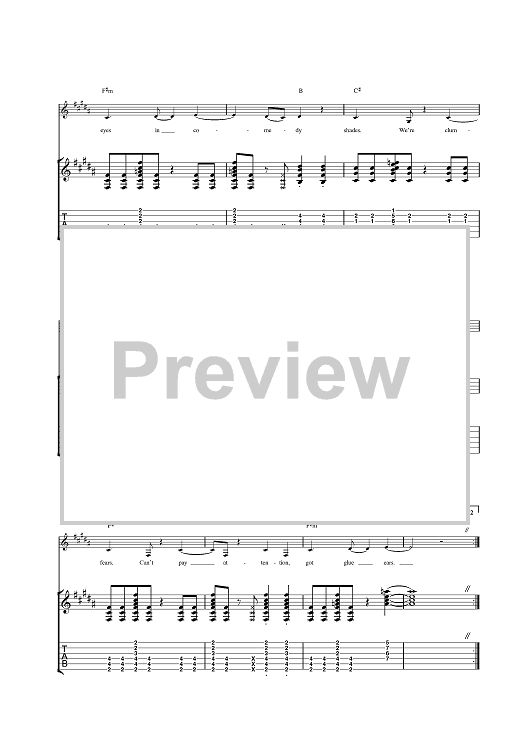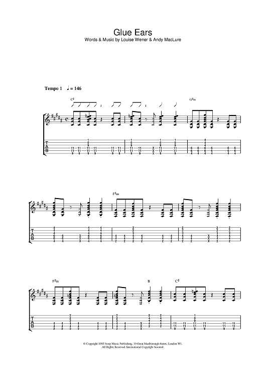 Digital Sheet Music for Glue Ears by Sleeper scored for Guitar Tab; id:376277