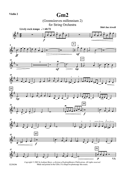 Digital Sheet Music for Gm2 (Greensleeves millennium 2) - Violin 2 by Shirl Jae Atwell scored for String Orchestra; id:458485