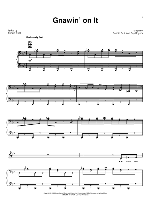 "Gnawin' On It" Sheet Music by Bonnie Raitt