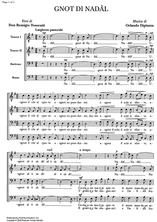 "Gnot di nadâl - Score" Sheet Music by Orlando Dipiazza
