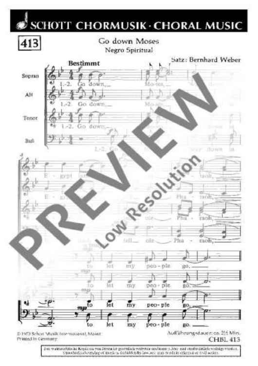Digital Sheet Music for Go Down, Moses - Choral Score by Bernhard Weber scored for Mixed Choir (satb); id:472003