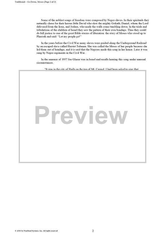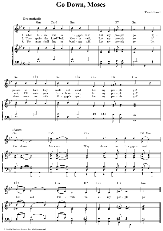 Digital Sheet Music for Go Down, Moses by Traditional scored for Piano/Vocal/Chords; id:355117