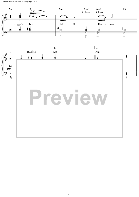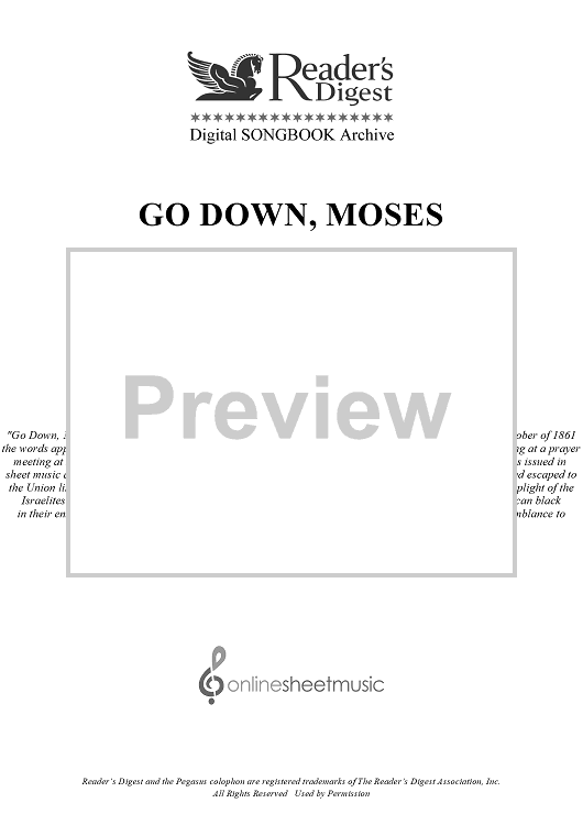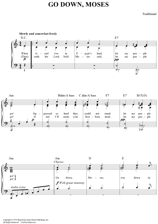 Digital Sheet Music for Go Down, Moses by Traditional scored for Easy Piano/Vocal/Chords; id:432908