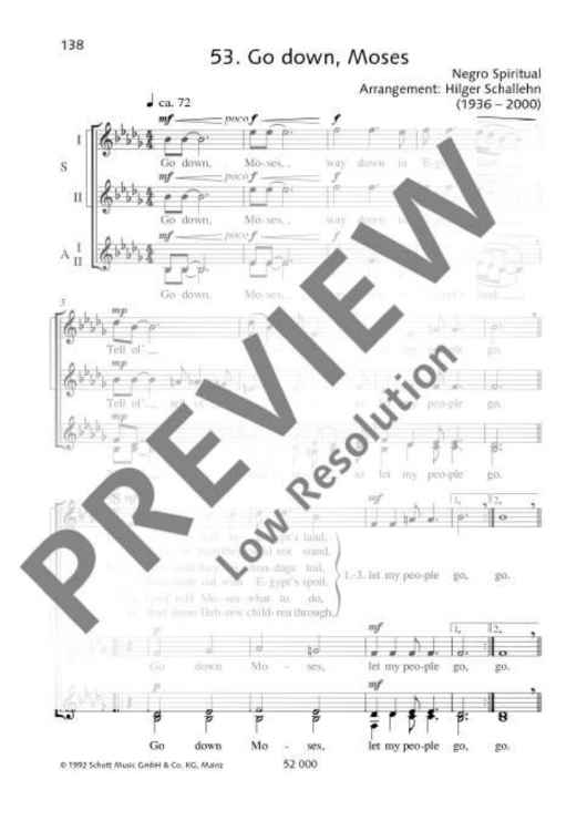 Digital Sheet Music for Go Down, Moses by Wilfried Fischer, Hilger Schallehn, Hans Guenther Bastian scored for Female Choir (ssaa); id:481934