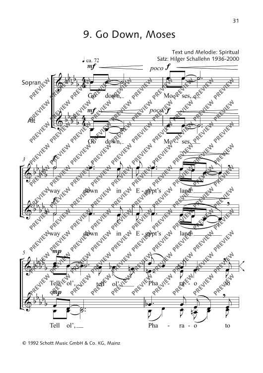 Digital Sheet Music for Go Down, Moses by Hilger Schallehn scored for Female Choir (ssaa) A Cappella; id:496368