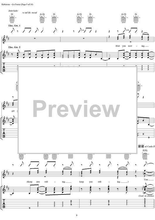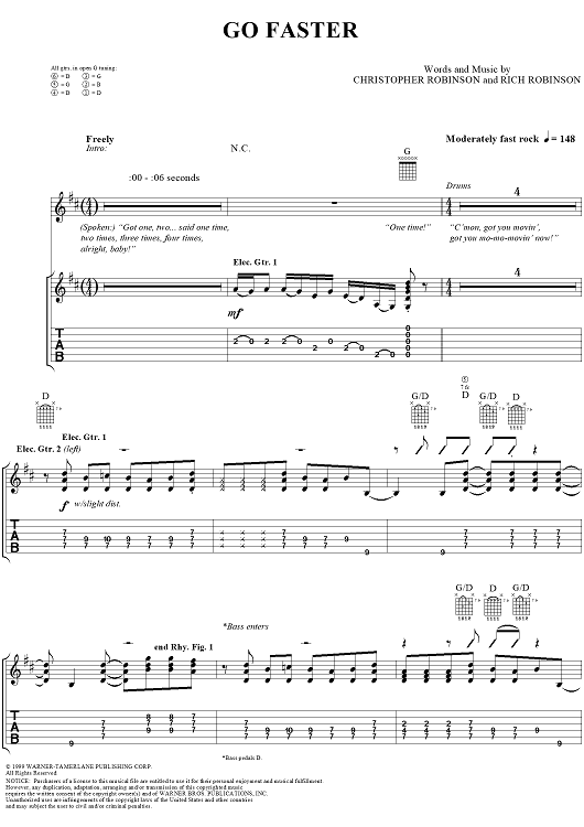 Digital Sheet Music for Go Faster by The Black Crowes, Chris Robinson, Rich Robinson scored for Guitar Tab/Vocal; id:189597