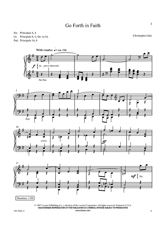Digital Sheet Music for Go Forth in Faith by , Christopher Gale scored for Organ Solo; id:434507