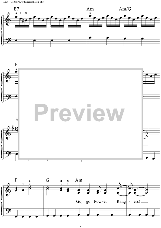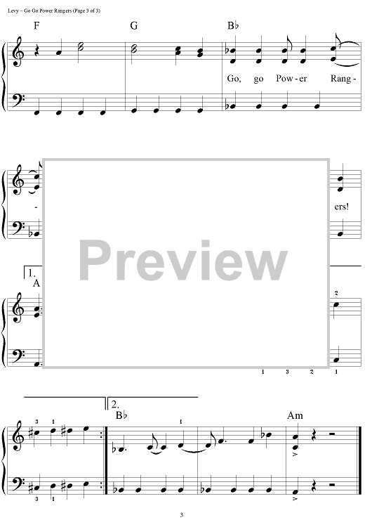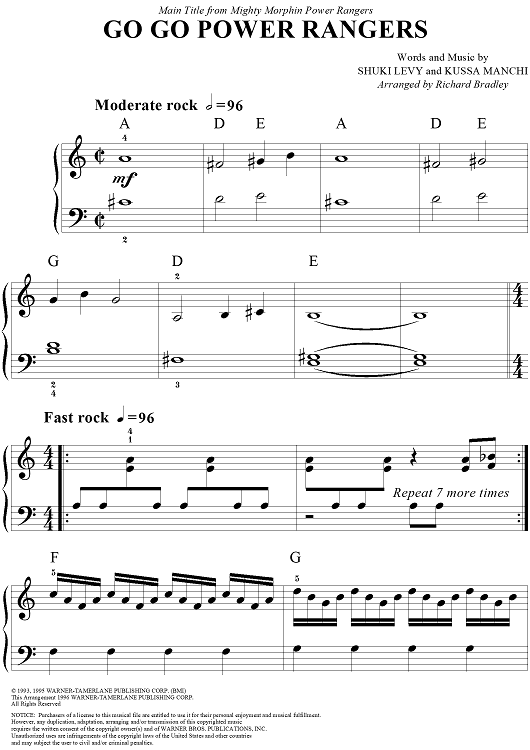 "Go Go Power Rangers" Sheet Music by Shuki Levy