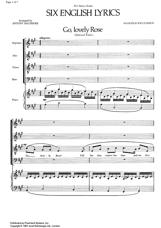 Digital Sheet Music for Go, Lovely Rose by Antony Saunders, Malcolm Williamson scored for Choir/Piano; id:333584