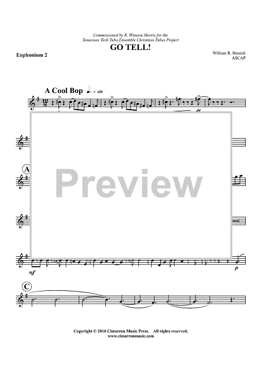 "Go Tell! - Euphonium 2 BC/TC" Sheet Music by William R. Brusick