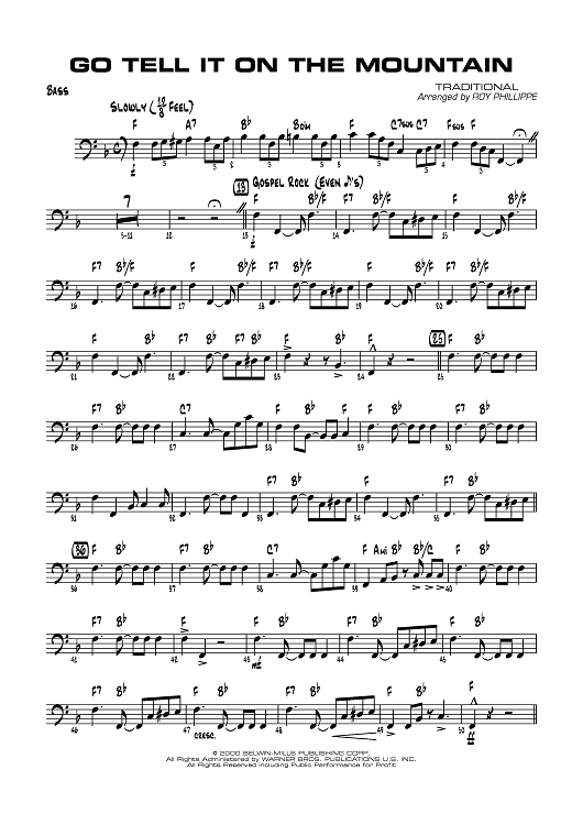 Digital Sheet Music for Go Tell It On the Mountain - Bass by Traditional, Roy Phillippe scored for Jazz Ensemble; id:359594